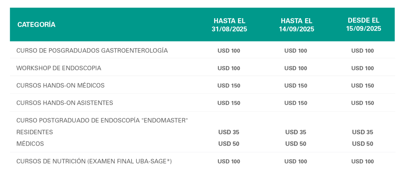 * La inscripción al Congreso de “Asistentes en Endoscopía” incluye el acceso al Workshop y al Congreso de Asistentes en Endoscopia.